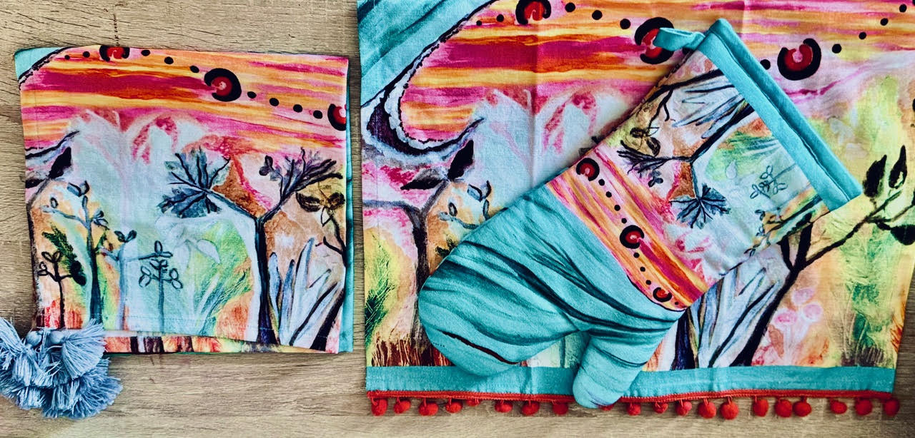 Table linen / napkins range, artwork featured “Flaming Hearts“
