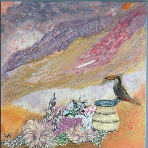 Mixed media art on textile board
